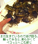 しかしそうした後、粉をつけてカラッと揚がったモレーケは、そのまま素揚げにしたものに比べて余分な水分がなく、身はふっくら、殻はさくさく… う、うまい! 可哀相だけれど、卵で「詰め物」をした方がカニのうまさを一層堪能できるようだった。