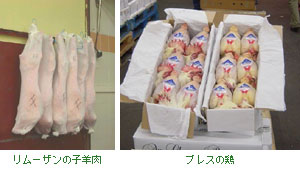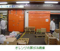 関連施設はいろいろありますが屠畜場はなく、生きている家畜や家禽は取り扱わず、枝肉などに処理したもの(写真右)を売買します。トラックからの出し入れも外気に触れないようになっていたり、商品の鮮度を保つために肉関連部門は建物全体が大きな冷蔵庫になっていたり、買った品物を持ち歩かずに保管できる冷蔵庫を備えていたり(写真下)、売り手も買い手も入場する前には白衣を着用したりと、 衛生面には十分に配慮しています。肉売り場などはてとても寒いのですが、寒さをいいことに、暖を取りがてらフランス人は大好きなおしゃべりを楽しんでいました。 |