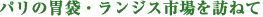 3月にパリの郊外にあるランジス市場に行ってきました。市場の面積、取扱商品の数量とも世界最大級で、パリの胃袋と呼ばれています。ランジス市場には関係者以外が入場するには許可書が必要で、自由に出入りできません。 今回はパリの16区にある1ッ星レストラン「アストランス」のシェフ、パスカル・バルボさんの仕入れに同行させてもらいました。