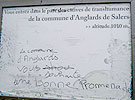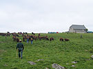 トランジュマンスの敷地を示す看板。ここから先、馬、牛、子牛などを放し飼い