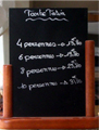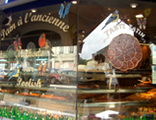 パン屋の店頭。タルト・タタンの絵が描かれたウインドーがユニーク