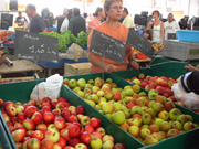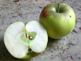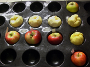 りんごの品種別味比べをしました。左からエルスター、アカネ、アリアンヌ。上がレーヌ・デ・レネット、下がガラ