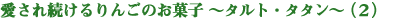 学校で作る場合、りんごに火が入り、型に隙間ができたらりんごを追加して作っていたのですが、リショヌーの実演ではりんごを追加せず、また、初めに入れたりんごの位置を途中で変えないのです。するのは型をゆするだけ。できあがったタルト・タタンはあめ色のつやを帯びており、中心部にはほんのり白い部分が残っています。作り立てのタルト・タタンは温かく、りんごの酸味と甘味のバランスは最高! 試食分に用意されたものを私は3つも食べてしまいました!! だって美味しいんですもの!