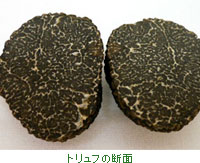 白トリュフ以外は外見はあまり変わらないが、切った断面や、芳香にはかなりの違いがあり、値段を比べれば明らかである。 |