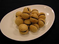 「貴婦人のキス」という意味の、チョコレートを挟んだアーモンド風味のひとくちサイズクッキーです。