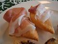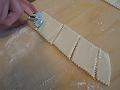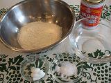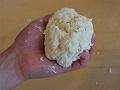 ニョッコの生地を作る。ボウルに強力粉、ベーキング・パウダー、塩を入れて混ぜ合わせる。溶かしたラード、水を加えて混ぜ合わせる。ひとまとまりにする。