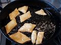 170℃に熱した揚げ油で揚げる。生地が膨らんで色付いたら取り出して油を切る。