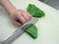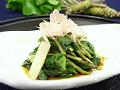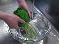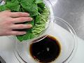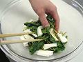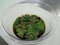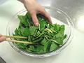 つけ地に、切った葉わさびの葉と軸を入れる。