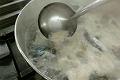 サバの身に火が通ったら味を確認する。味が薄ければ塩を加えて味を調える。仕上げにしょうがの絞り汁を加える。