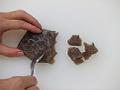 こんにゃくは下処理をしてげんこつで叩き、スプーンで食べやすい大きさにちぎる。