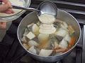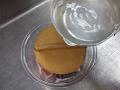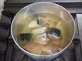 4のあらと6の身にそれぞれおとし蓋をして、さし水をした熱湯を注ぎ、箸でゆっくりかき混ぜる。