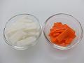 大根とにんじんは皮をむき、4〜5mm厚さの短冊切りにする。