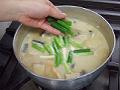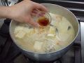 煮汁で柔らかく溶いた信州みそを加える。仕上げに酒、みりん、薄口しょうゆを加えて味を調える。