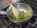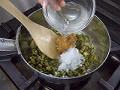 鍋にサラダ油を熱し、ふきのとうを加える。油がなじむまで炒める。
