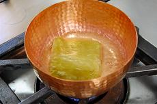 白板昆布をきれいな緑色に仕上げるために銅鍋を使用した。