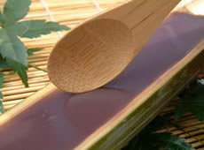 水ようかんは、あら熱を上手に取らないと、水より餡が重いから下に沈んでしまうよ。 熱を取りすぎると、固まってしまって容器に流せなくなってしまいます。