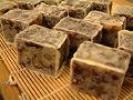 固まれば、流し缶から取り出し、包丁で好みの大きさに切る。