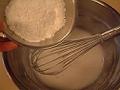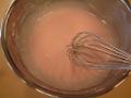 餅粉と薄力粉を合わせてから加え、ダマにならないようによく混ぜる。