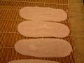 生地の裏側に裏面に25gに分割した小豆粒餡をのせる。