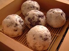 たっぷりの粒餡がところどころ透けて見えるのが、まるで吹雪のようなお饅頭。