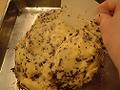 出来上がって冷ました黄味餡に刻んだチョコレートを混ぜる。