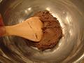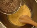 薄力粉、ベーキングパウダー、ココアパウダーをよく混ぜてボウルの中に加え、木ベラでさっくりと混ぜる。