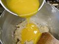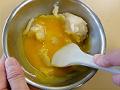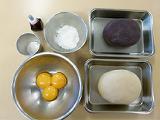 餡の一部を取り、溶いた卵黄と混ぜ合わせる。
