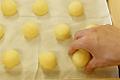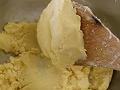 餡がかたくなり手につかなくなれば、残りの卵黄を加える。