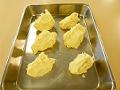 蒸し器に乾いたさらしを敷き、お菓子の閉じ口を下にして並べ、5分間蒸す。