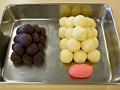染めていない生地を20gずつ、中餡として小豆こし餡を15gずつに分割する。