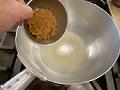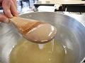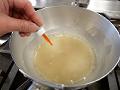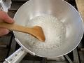 粉寒天、分量の水を鍋に入れ、混ぜながら沸騰させる。