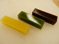 黒砂糖、柚子、抹茶のようかんをそれぞれ同じ大きさに切って出来上がり。