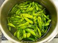 枝豆を洗い、十分にやわらかくなるまでゆでる。