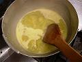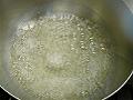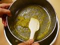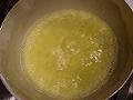 水につけておいた糸寒天を水から引き上げ、水500mlを加えて火にかけ、しっかりと沸騰させる。