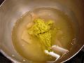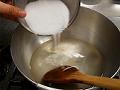 糸寒天が溶けたらグラニュー糖100gを加える。
