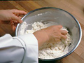 表面がなめらかになり、薄くのびるようになるまでしっかりこねます。