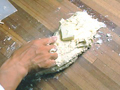 バターを加え、さらに台にこすりつけるようにしながら混ぜ込む。