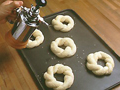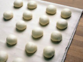 生地を40gに分割して丸め、布の上に並べて10〜15分やすませる。