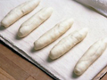 生地の表面に霧を吹き、220℃に温めたオーブンに入れ、約15分で焼き上げる。