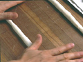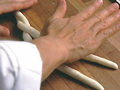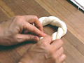 生地を折り返すか、巻き込んで棒状にし、しばらくやすませる。
