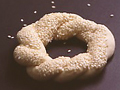 生地の表になる面を濡らしてごまをまぶし、オーブンプレートに並べる。