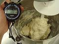 必要であれば、ボウルのまわりやアタッチメントについた生地をかき落とし、高速でこねる。