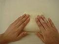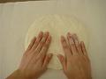 生地が裏返しになるようにボウルから取り出し、生地の中央から外側へと全体を押さえる。
