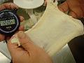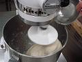 途中で調整水を加え、固さ調整を行ない、引き続き低速でこねる。