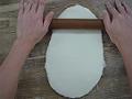 両面に麺棒をかける。裏返す時は90度向きを変える。