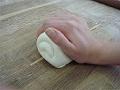 2等分(約220g)に切り分け、丸めて布の上に並べる。