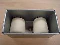 巻き終わりを下にして、2個の生地を型に入れる。