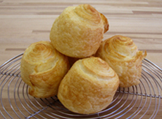 今回、紹介するパンはボーヴォロです。イタリアのヴェネト州あたりの方言で「かたつむり」を意味します。バターを折り込んだ生地をロールケーキのように巻いてカットし、切り口を上にして焼き上げる。その形が「かたつむり」のように渦巻き状になることから名づけられたパンです。