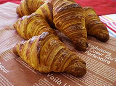 ハ〜イ!!フランスでは「三日月形」の物はマーガリンが折り込まれていて、「菱形」の物はバターが折り込まれているのです!折り込んでいる油脂で形を分け、消費者が分かるようにしてあげているのです。面白いですよね〜!!