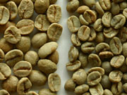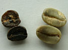 | 半発酵豆(左)と正常豆 |
